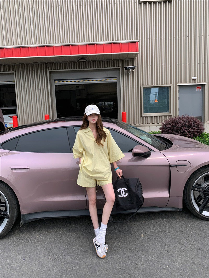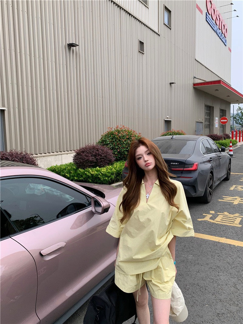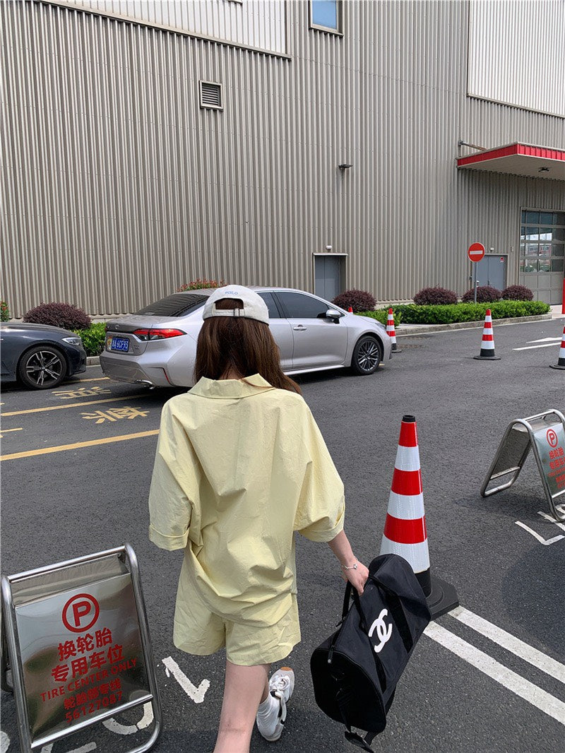Jun. 街頭素描極簡淡人系列row襯衫上衣 短褲 奶黃