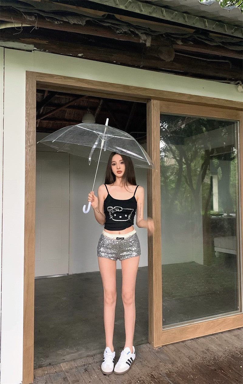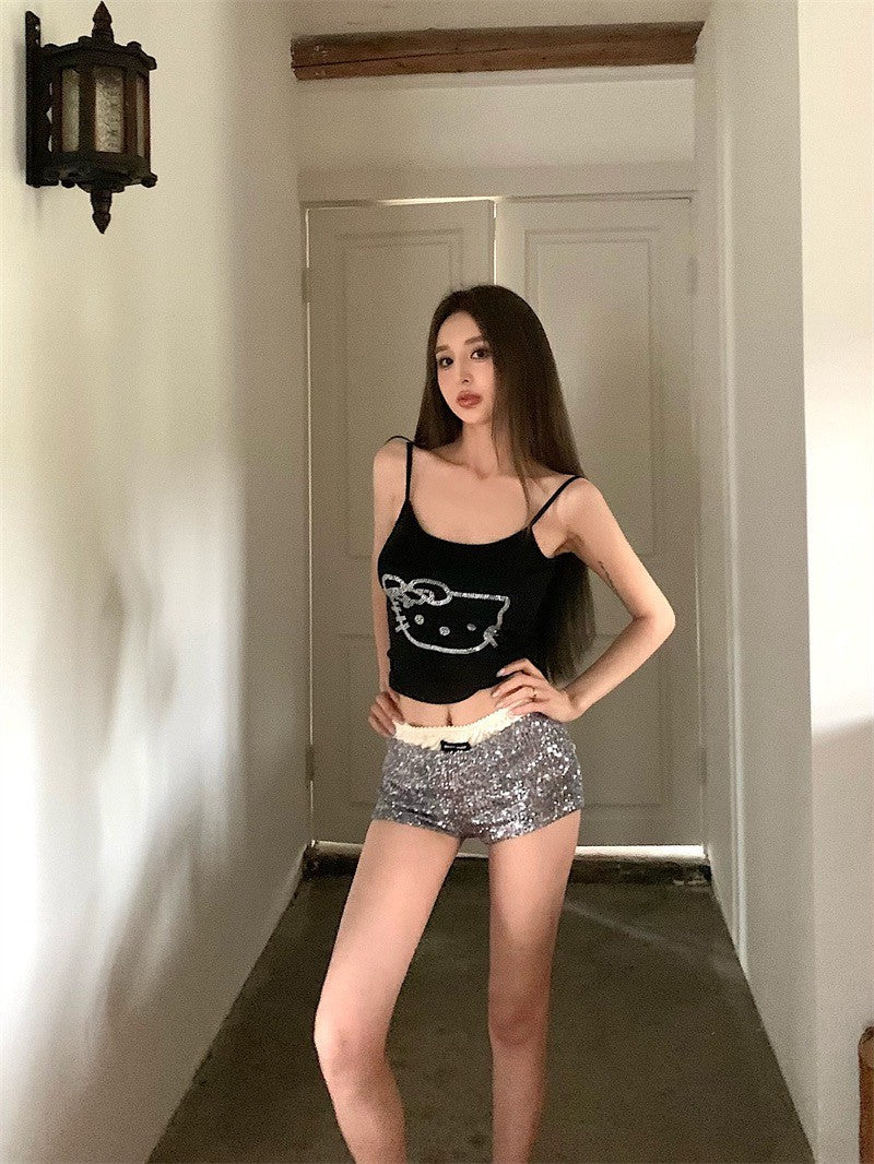 Jun. 鑽黏凱蒂貓細肩背心 黑色