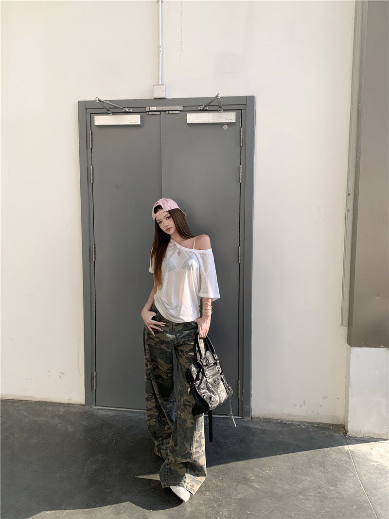 Jun. DITA美式甜酷百搭迷彩工裝褲
