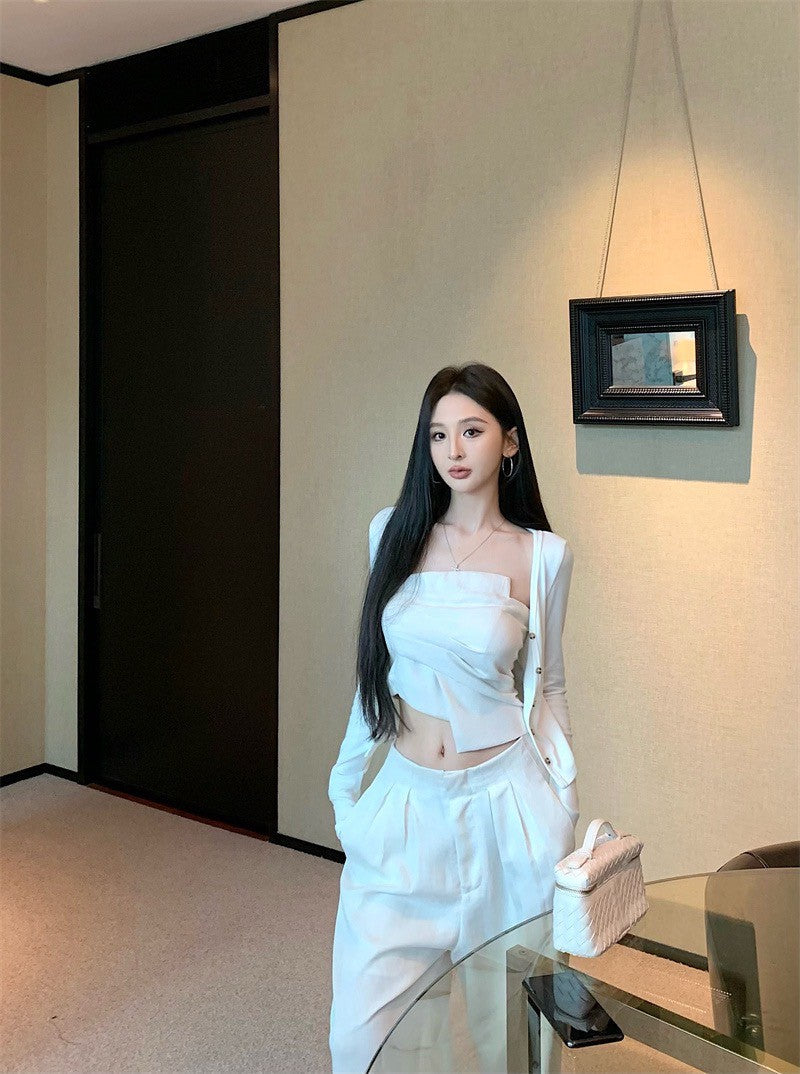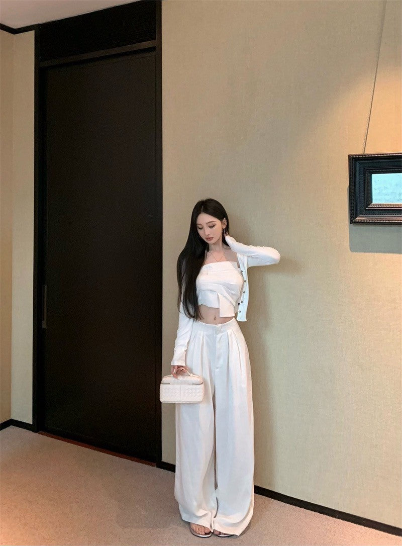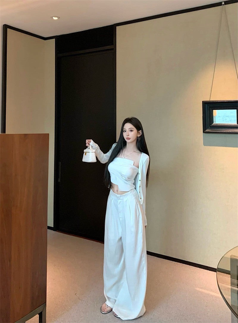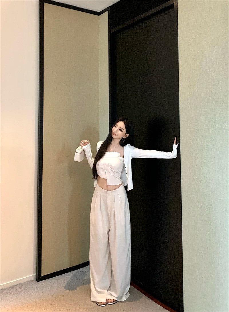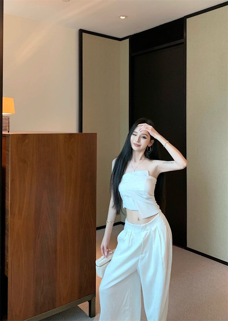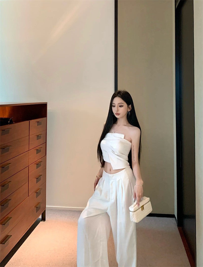 Jun. Origin 自然老錢 不規則抹胸高腰闊腿褲套裝 杏