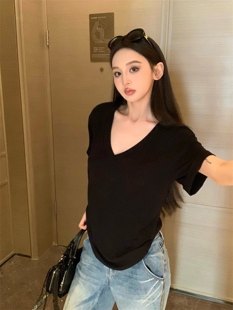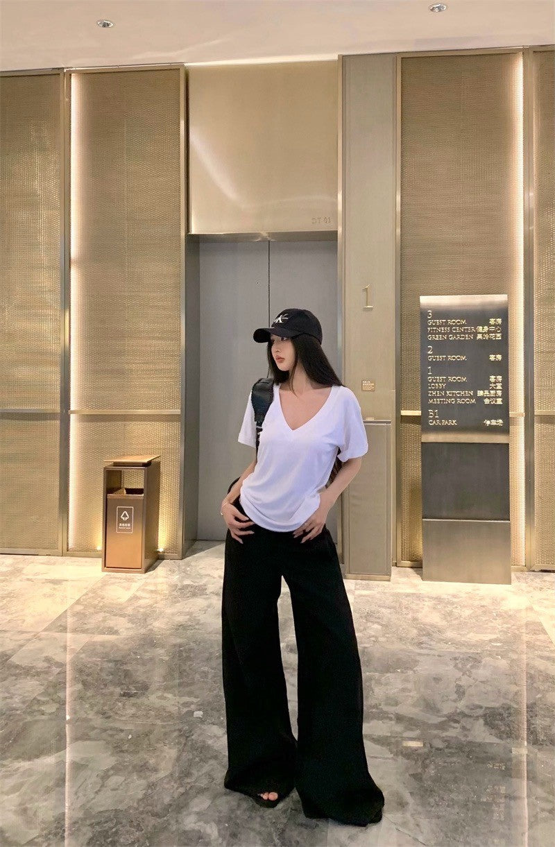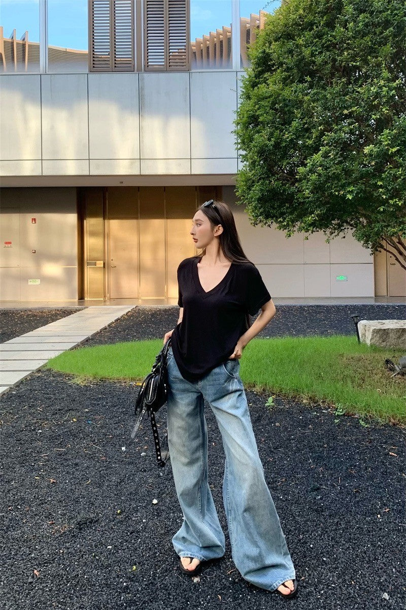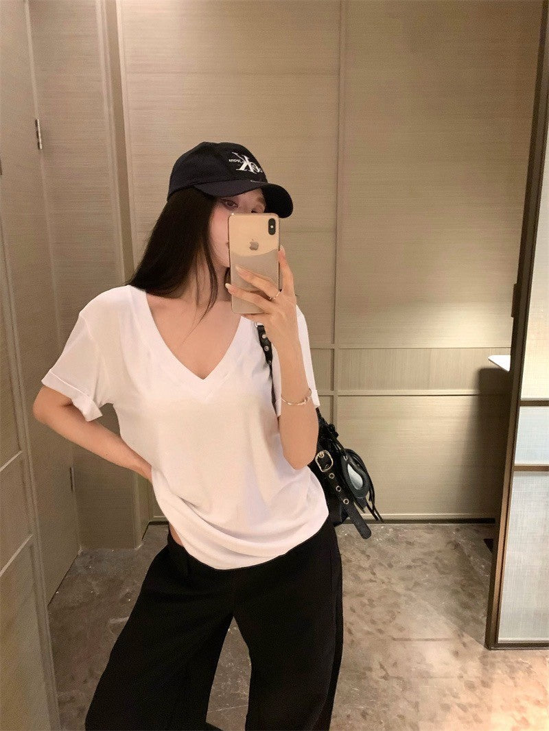 Mar. 基礎V領素顏T 寬鬆休閒短袖上衣 黑/白