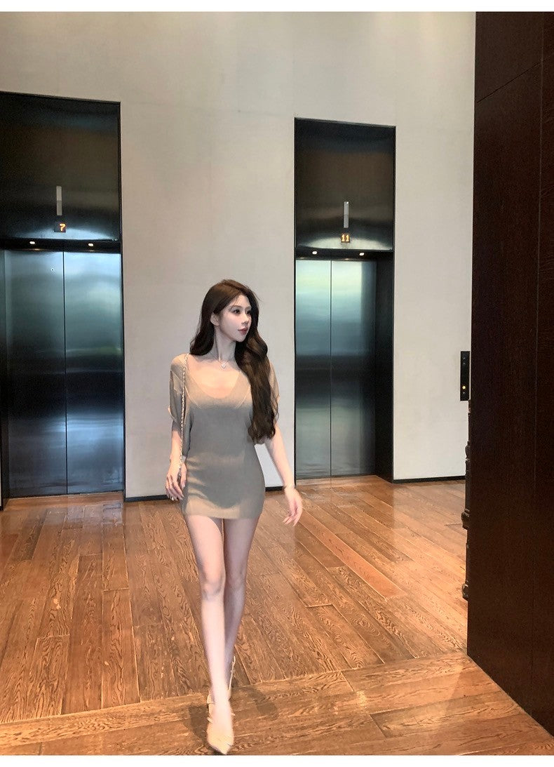 Mar. 奶欲甜心 氣質收腰蝙蝠袖斜肩針織上衣 顯瘦背心 卡杏