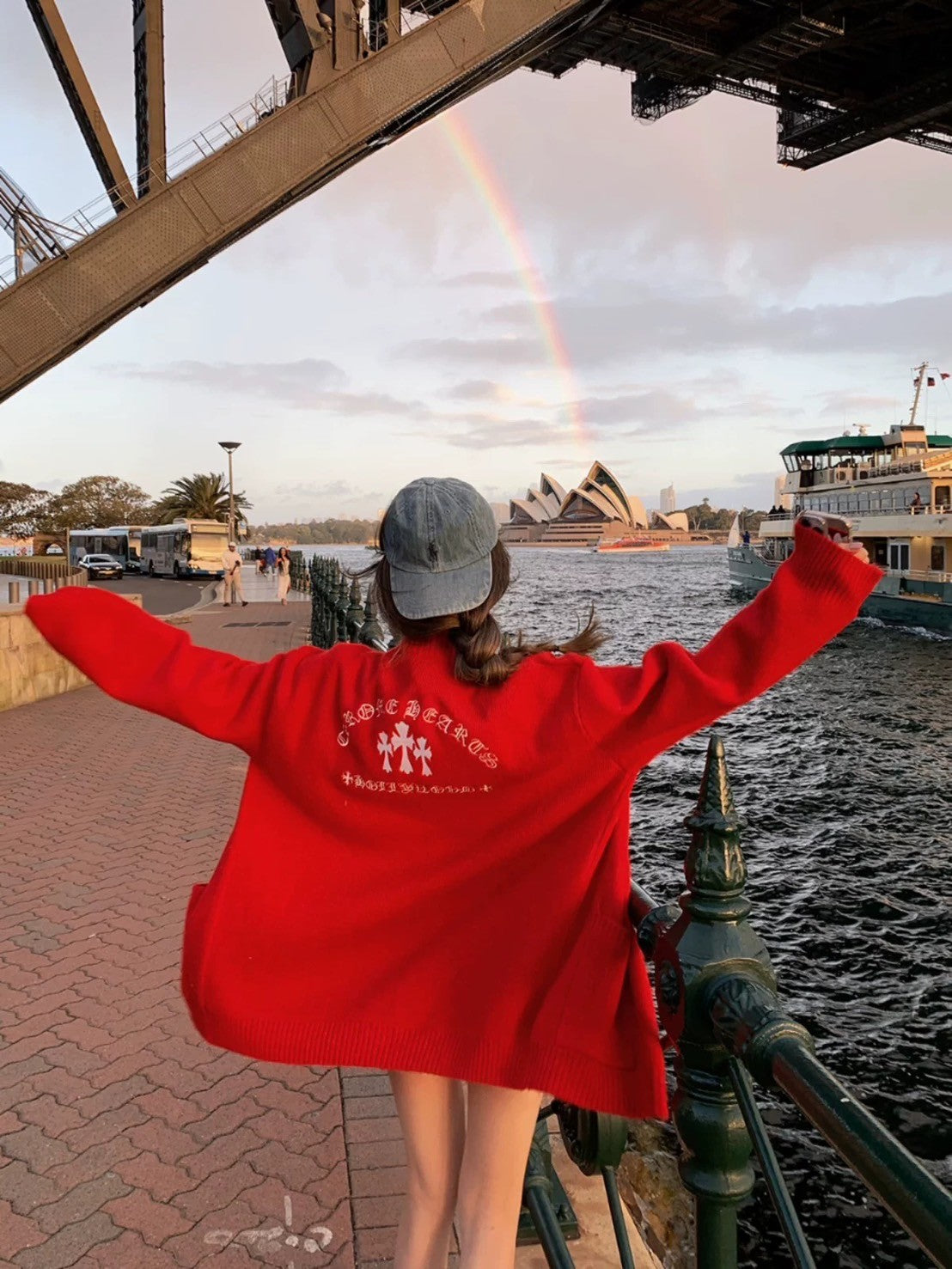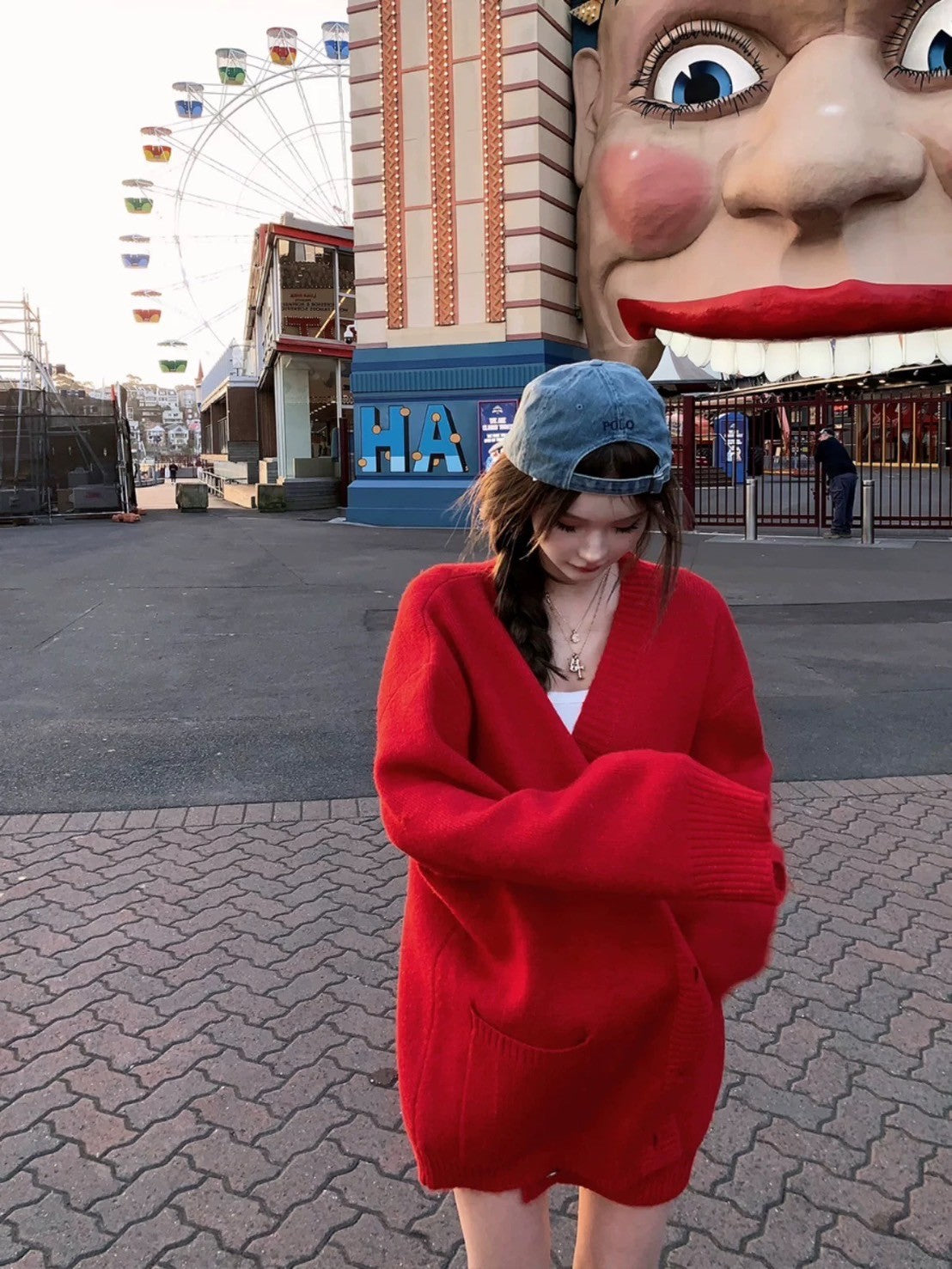 Mar. 日落海港 率性十字logo印花針織外套 紅/黑