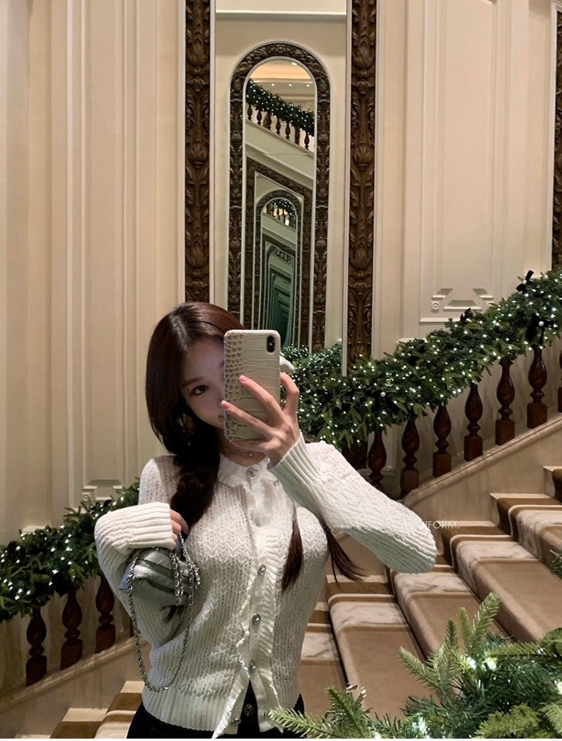 Mar. 早春甜心 Jennie香香同款氣質白針織背心開衫兩件組 白