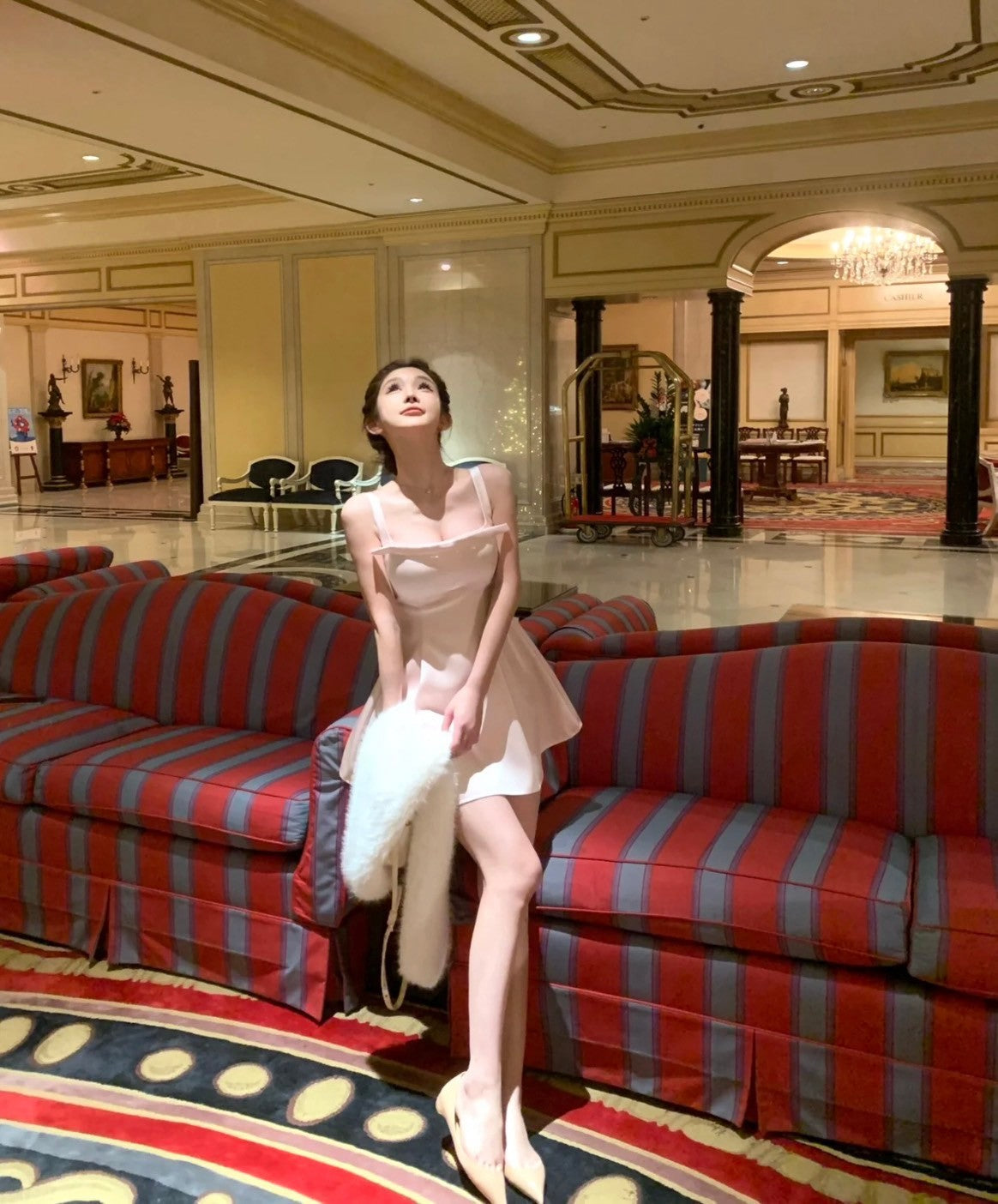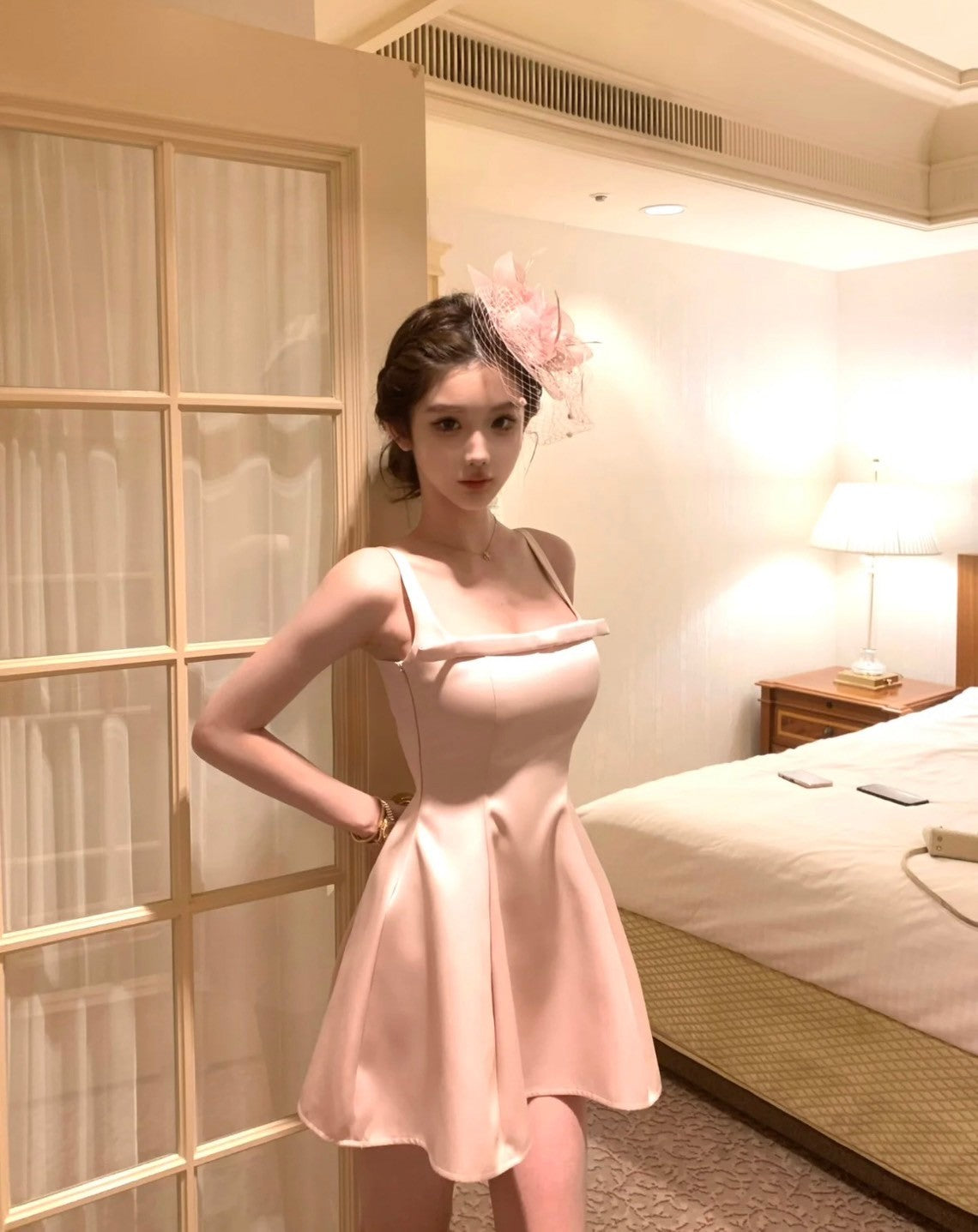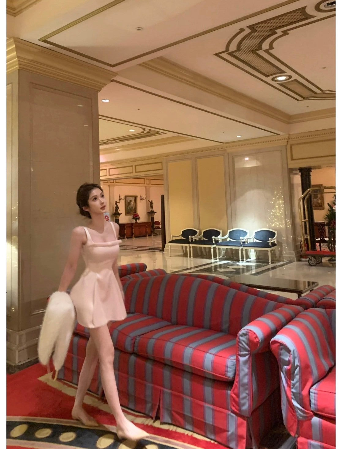 Mar. 曼妙天鵝 法式氣質蝴蝶結收腰連身裙 粉