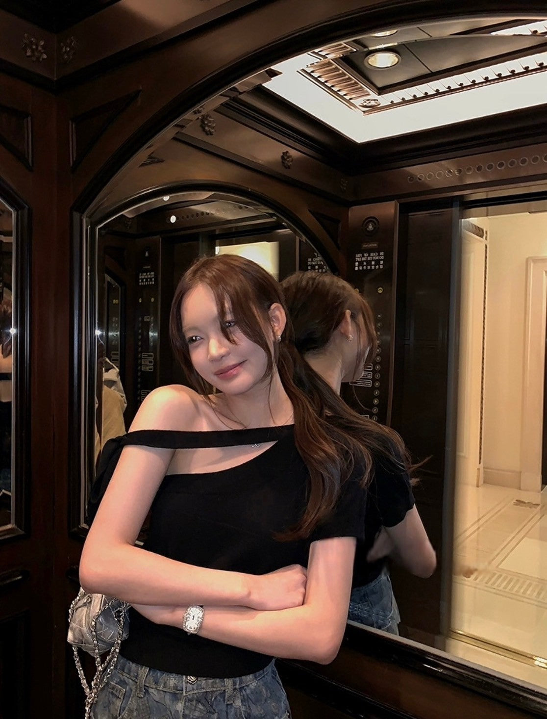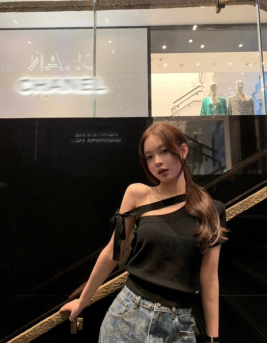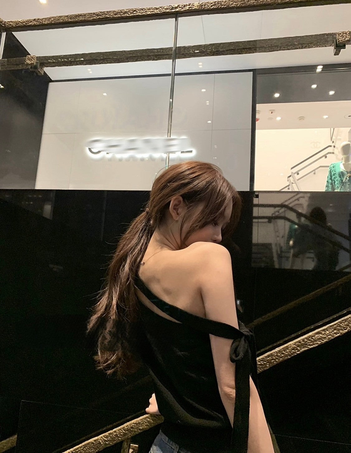 Mar. 法式中古小香 斜肩繫帶羊毛針織上衣 黑