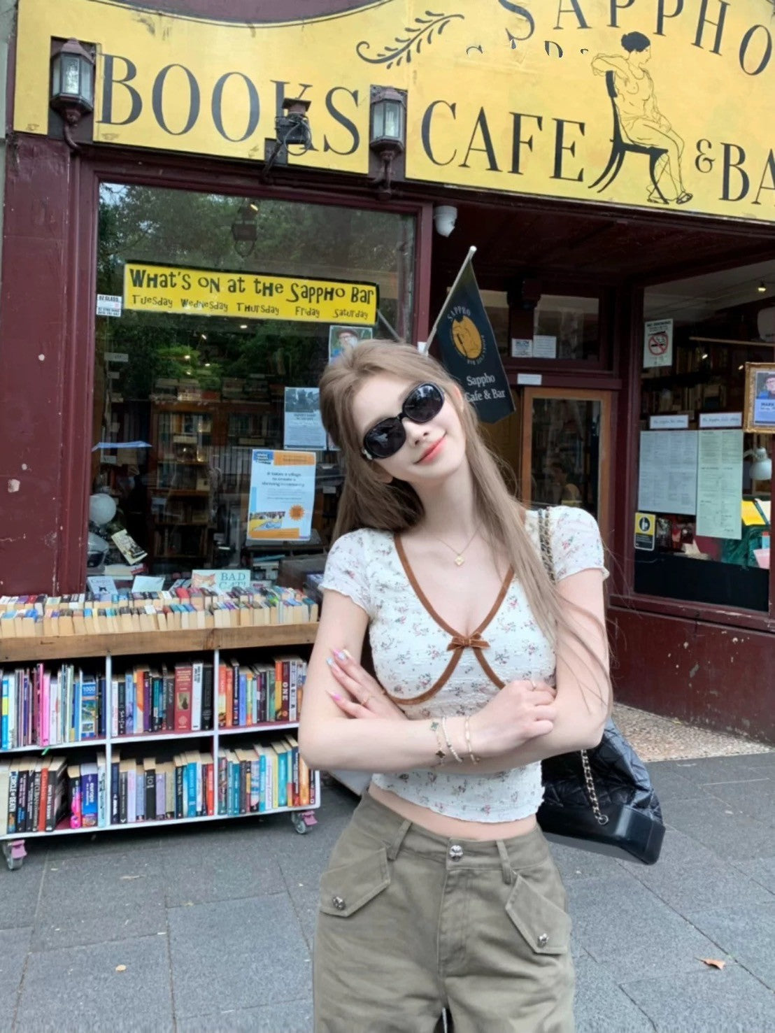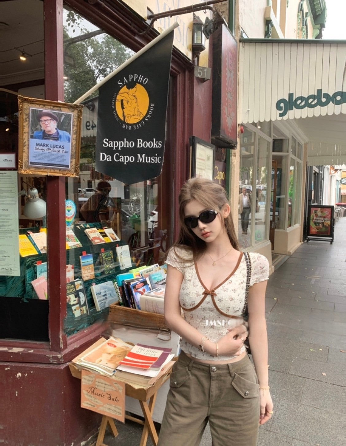 Mar. 百利甜心 復古撞色碎花V領上衣 可可梗