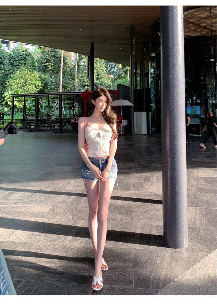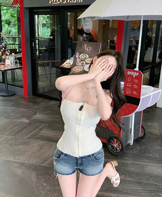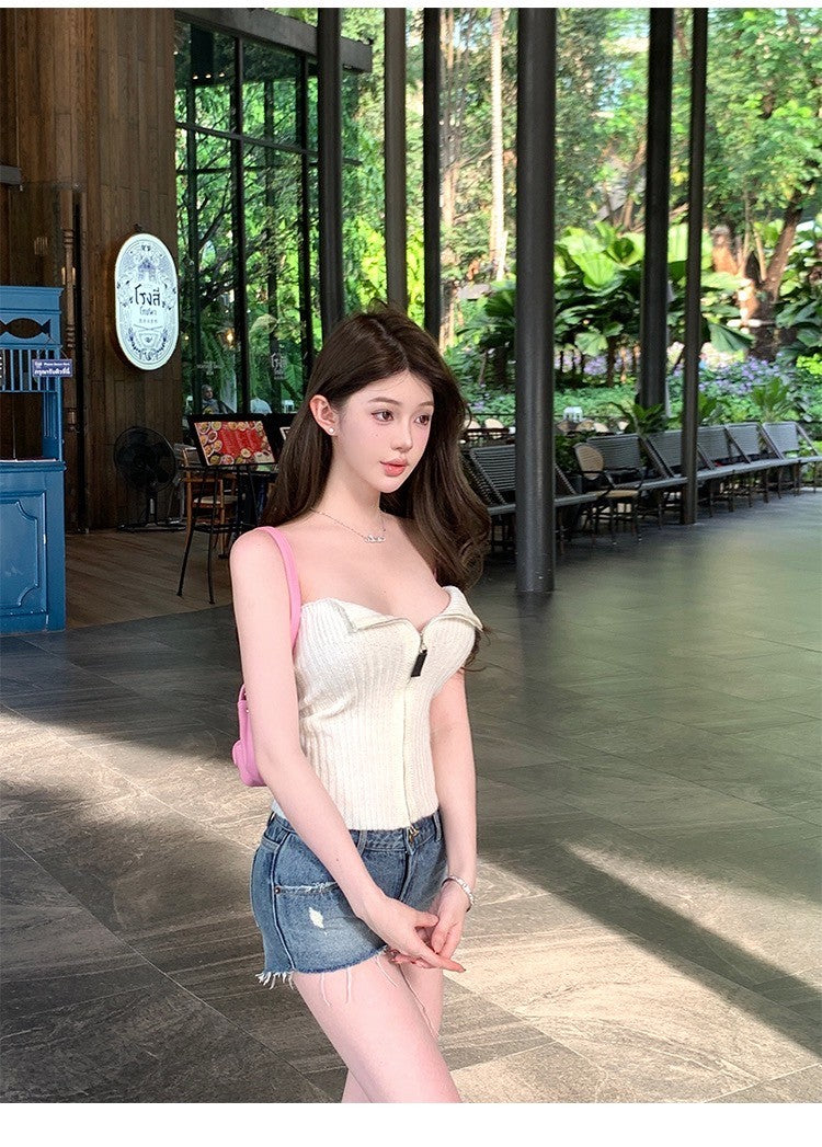 Mar. 純欲神器 拉鏈調節抹胸針織 杏白