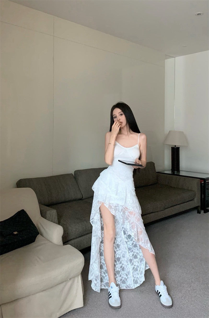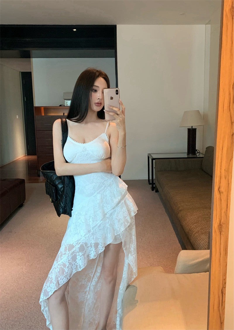 Mar. 與愛共舞 芭蕾蕾絲不規則蕾絲裙擺連身裙 白