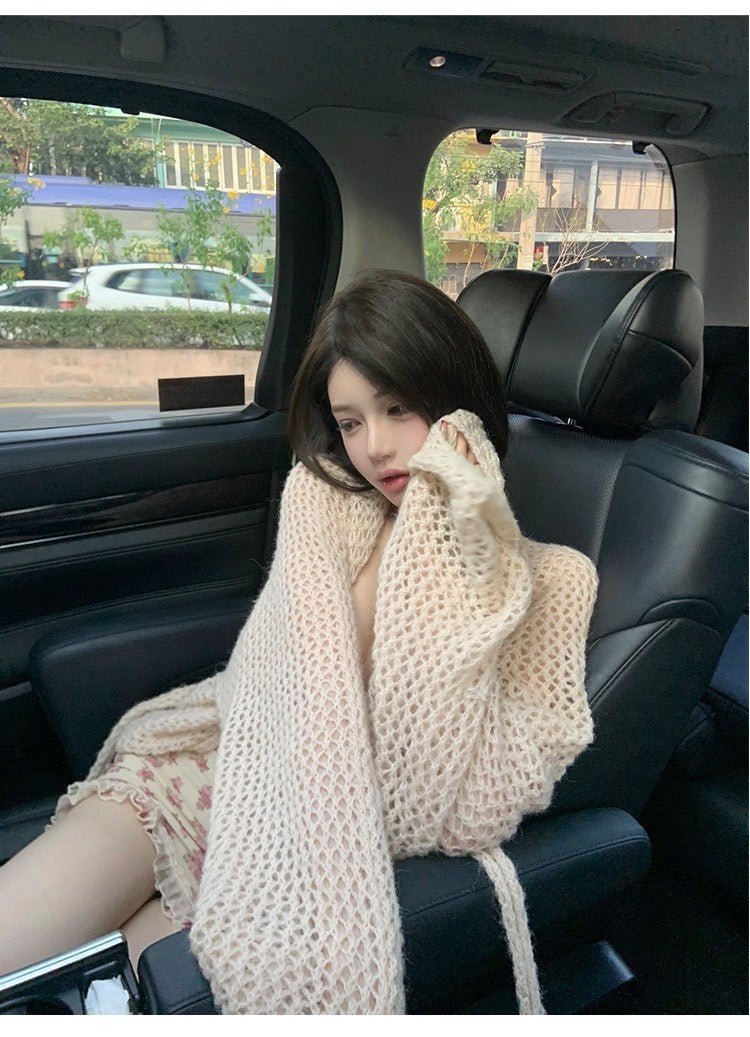 Mar. 貴感慵懶 網眼寬鬆綁帶針織開衫 杏