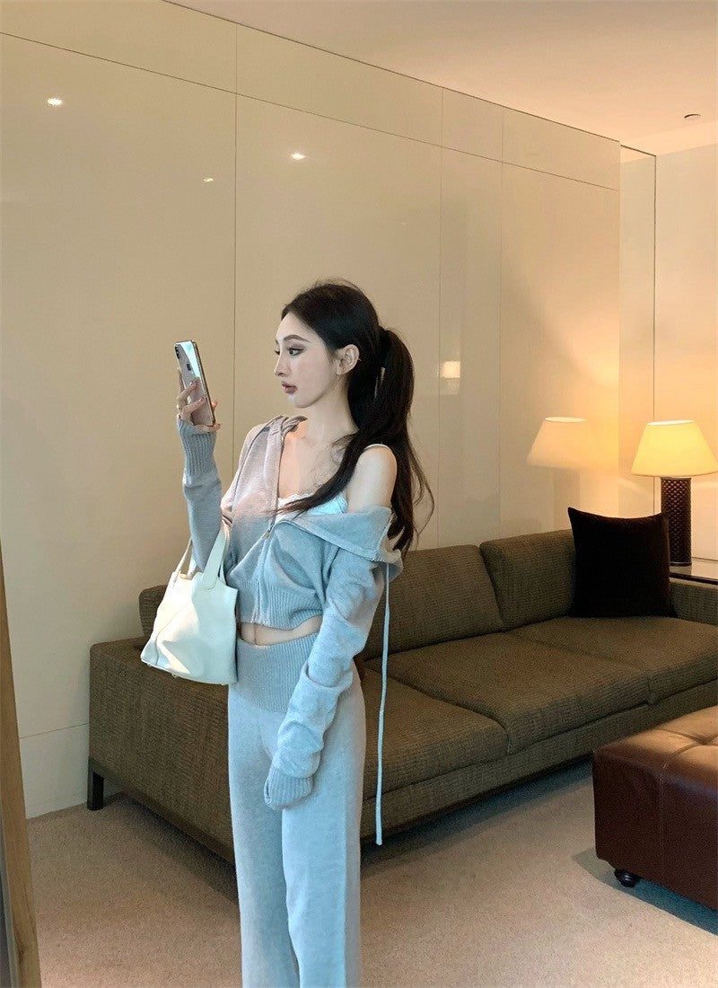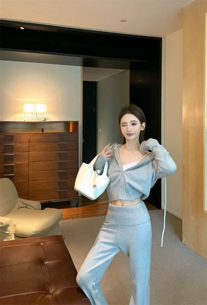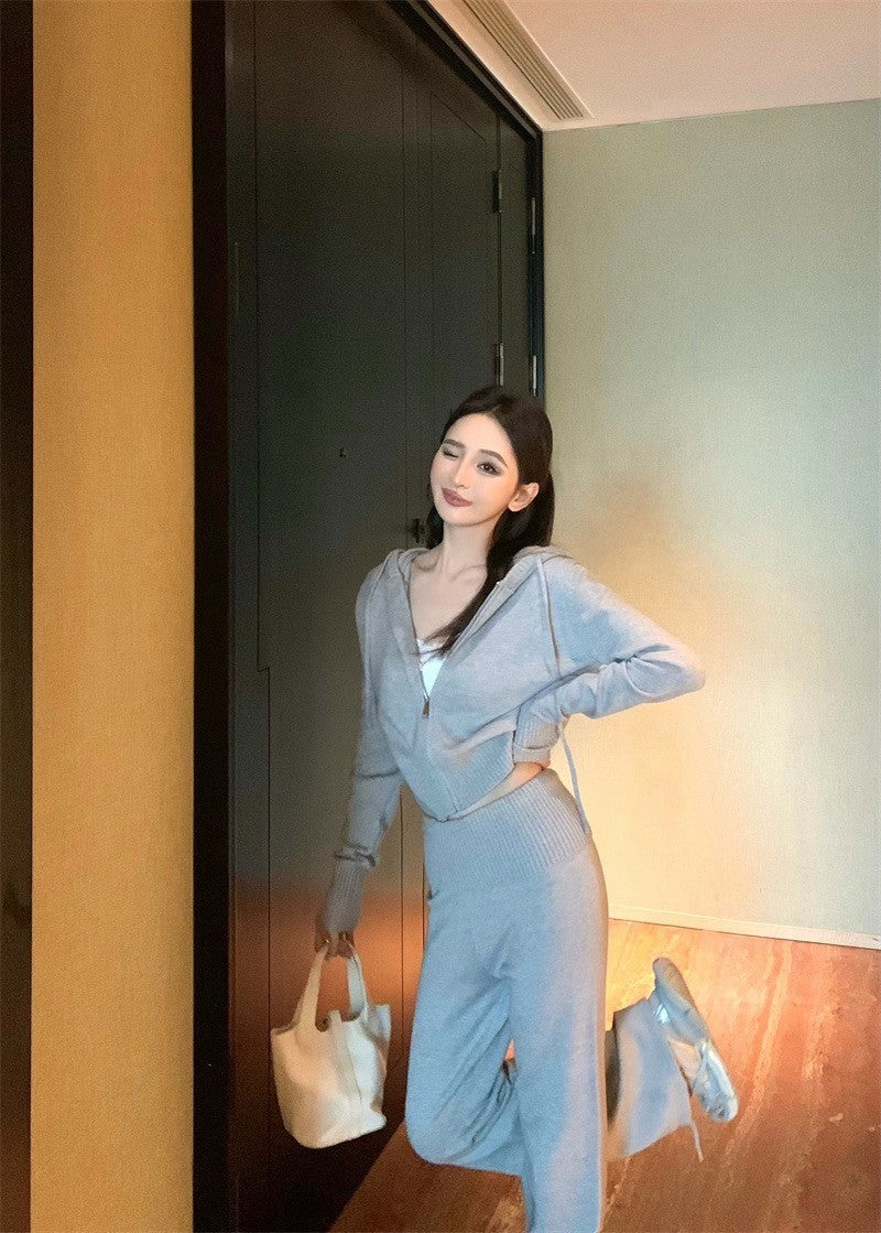 Mar. 飛航模式 基礎純色連帽針織休閒褲套裝 灰