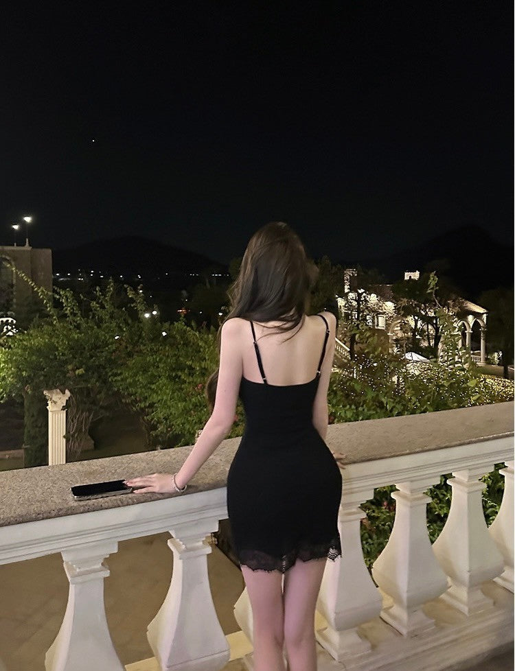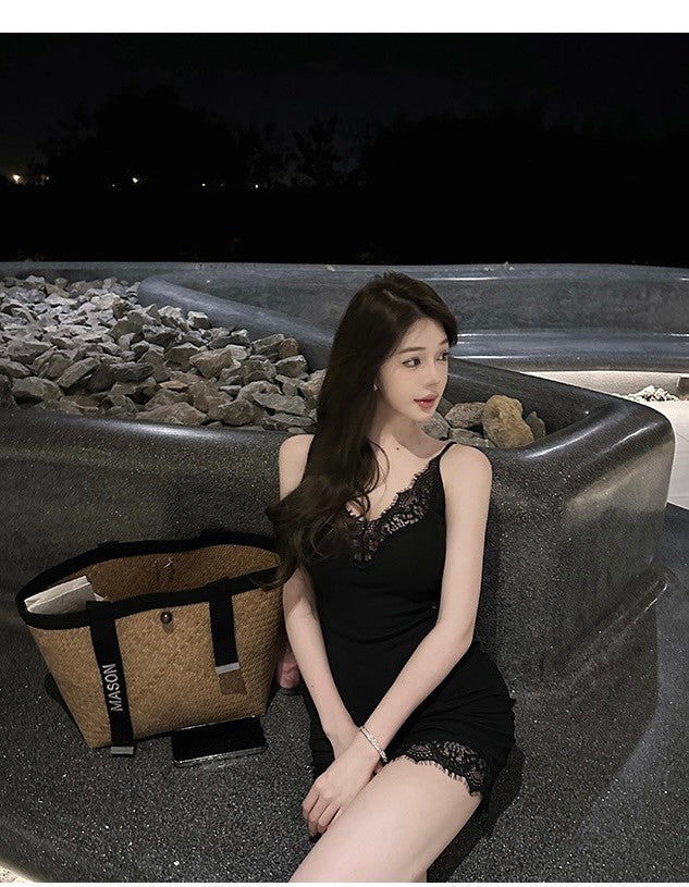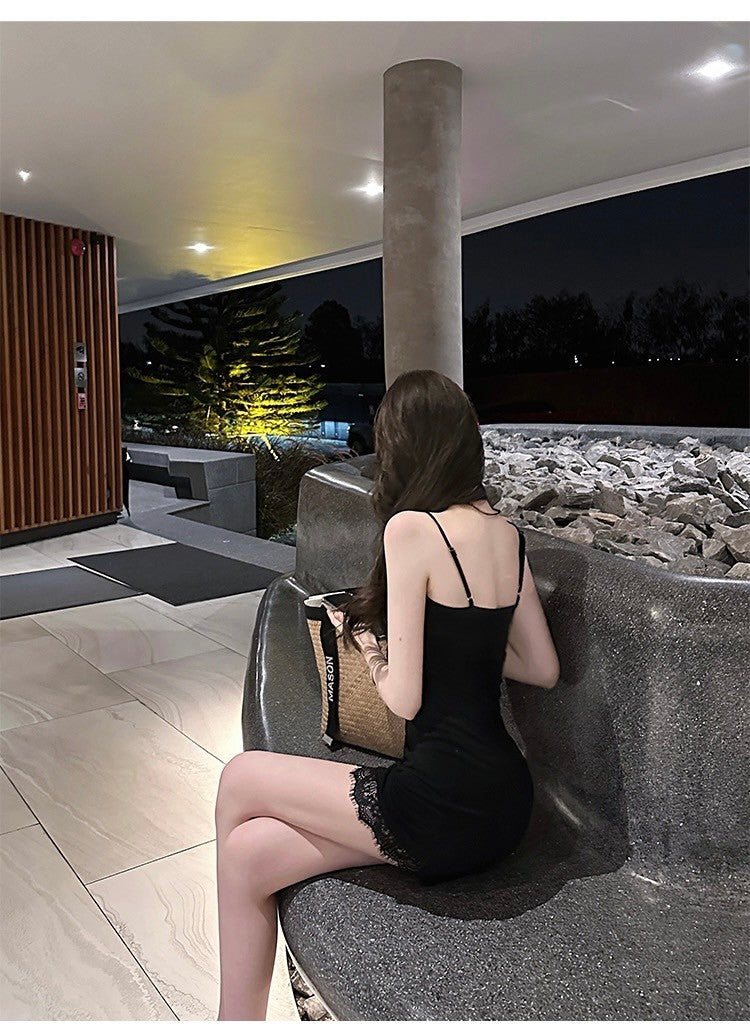 Mar. ys1 嬌矜私藏 性感透視感蕾絲針織連身裙 黑