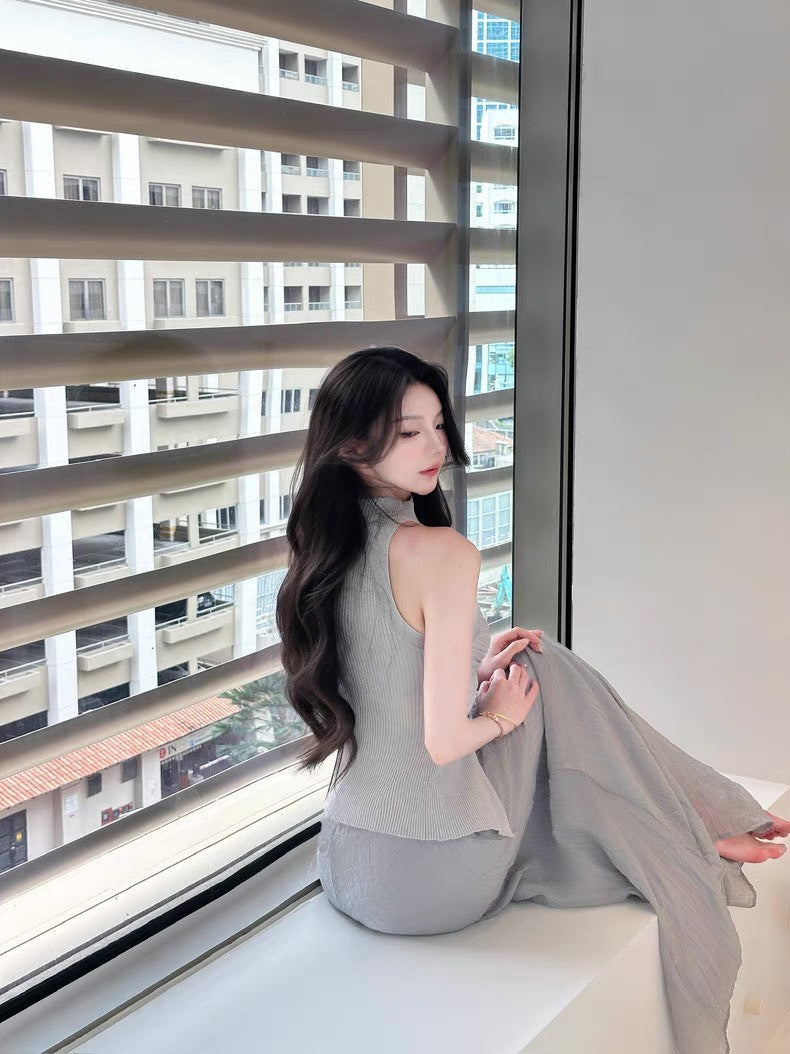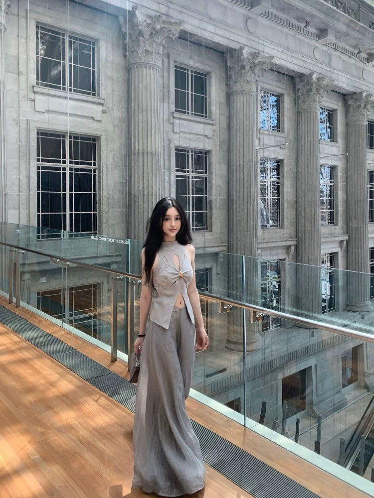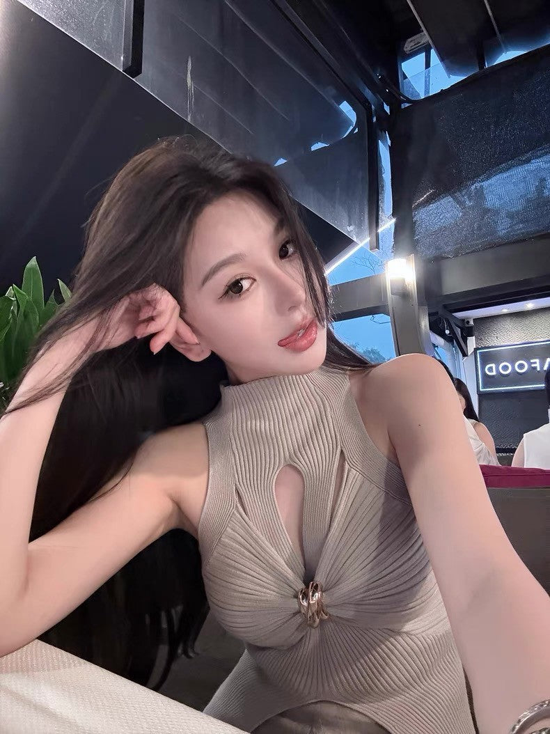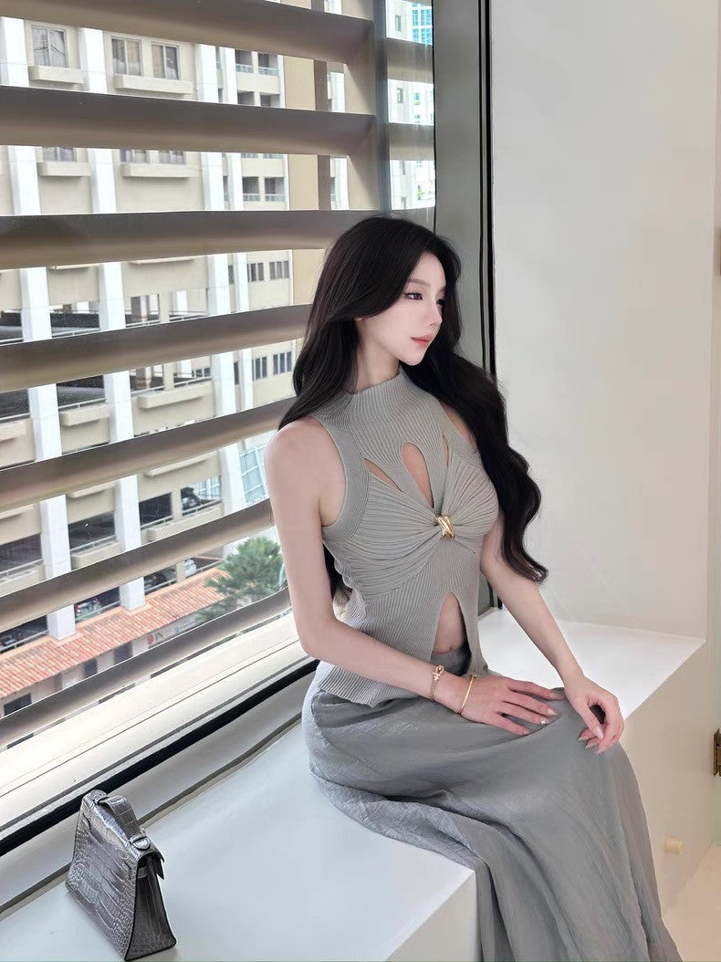 May. 千金即視感 貴氣高奢小巴扭結縷空針織背心 灰