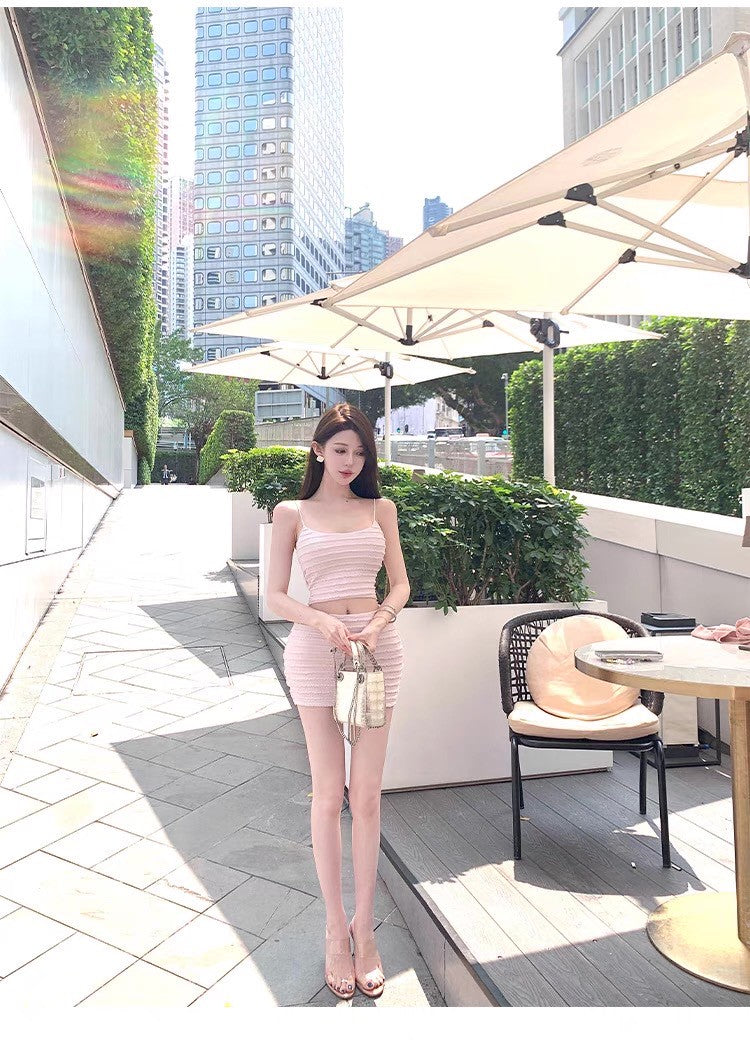 May. 夢幻泡泡粉 針織肌理紋背心半身裙套裝