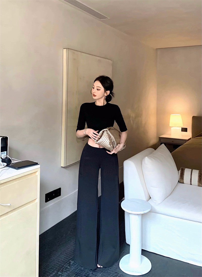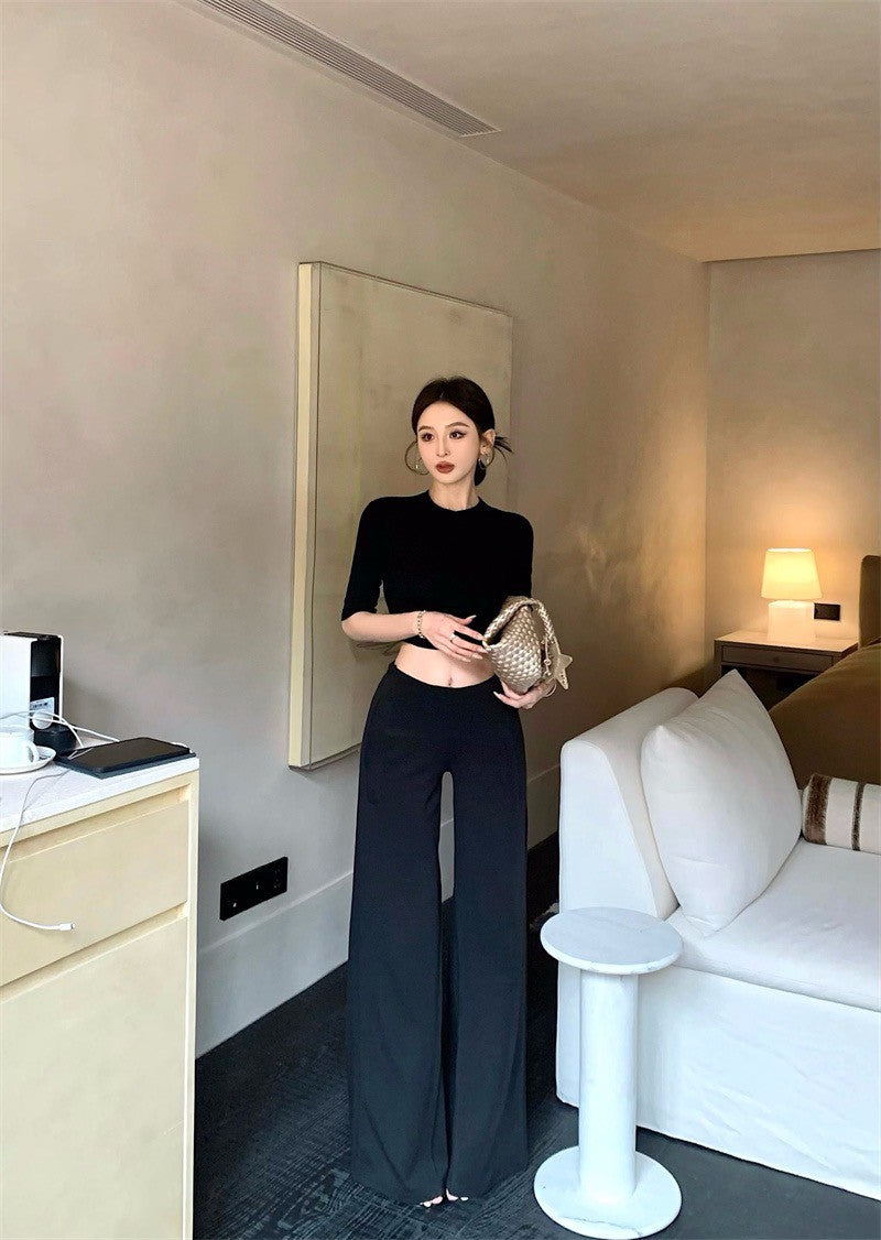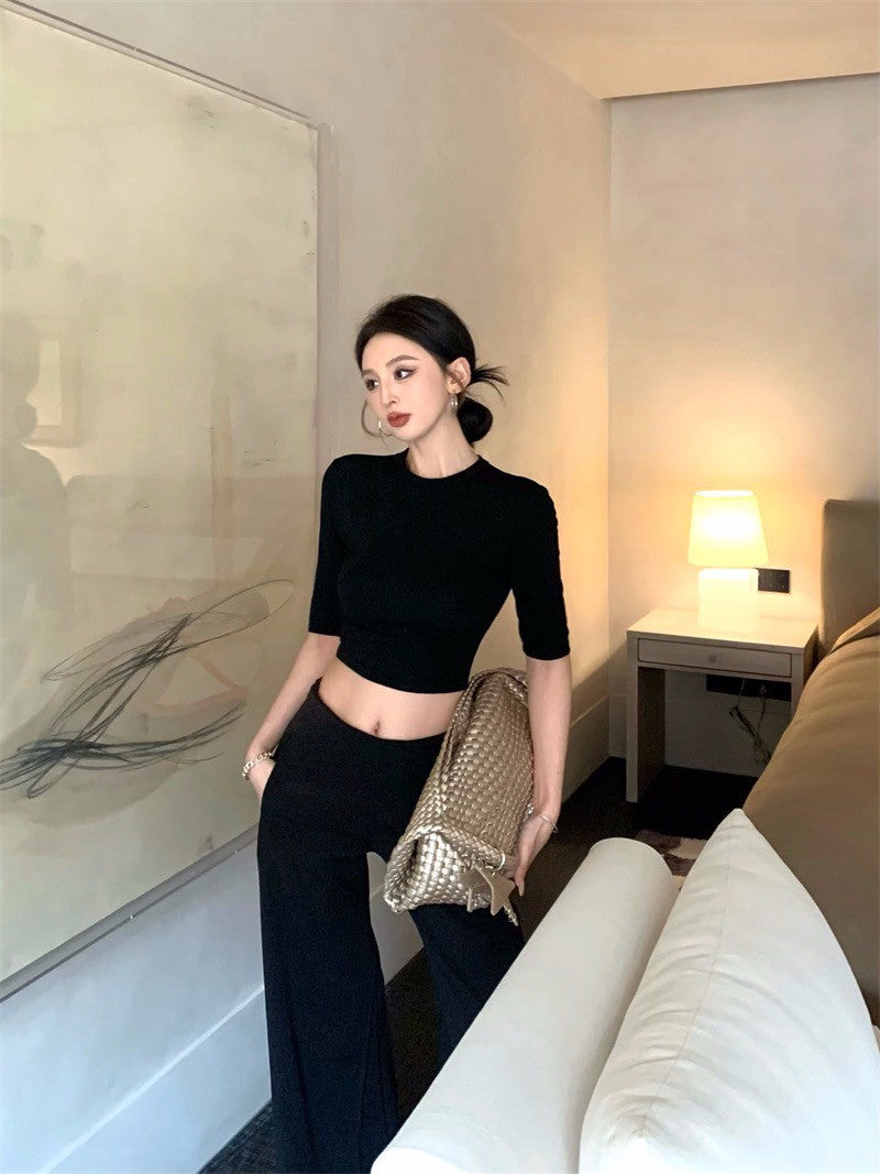 May. 極簡office siren高智修身五分袖上衣 設計款西裝休閒褲 黑
