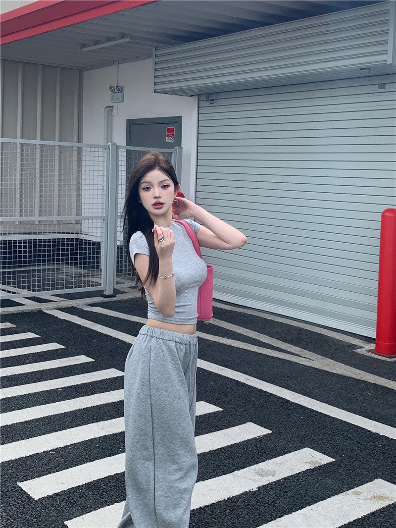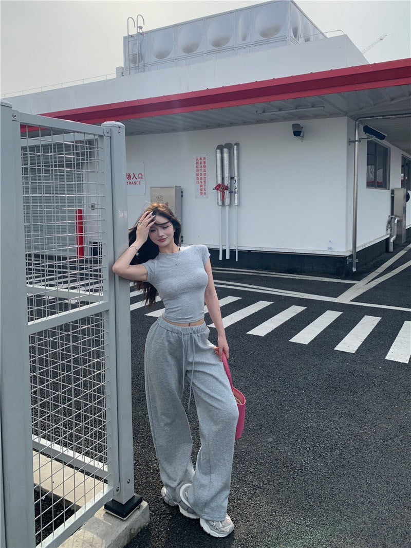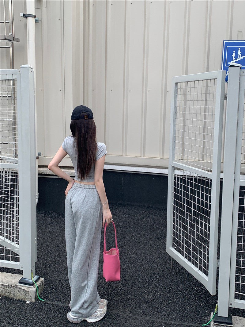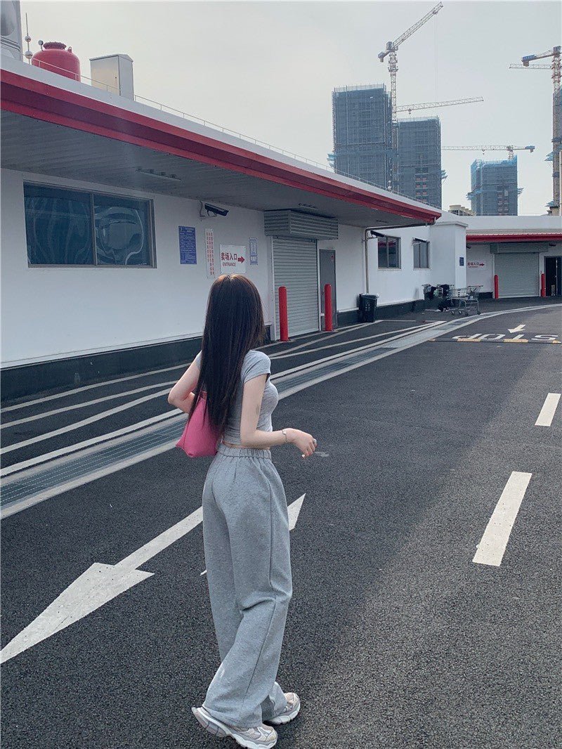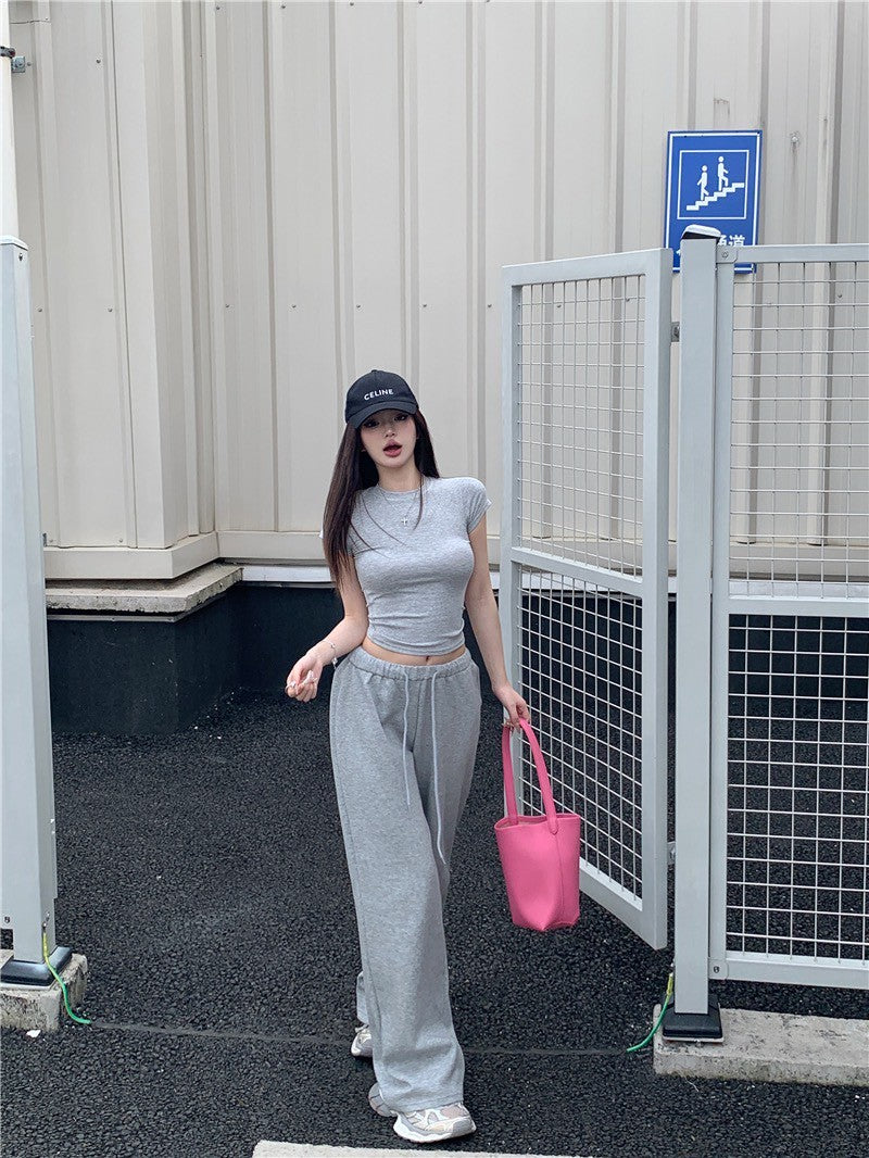 May. 清爽公式 簡約慵懶美式緊身上衣 鬆緊抽繩棉褲 灰