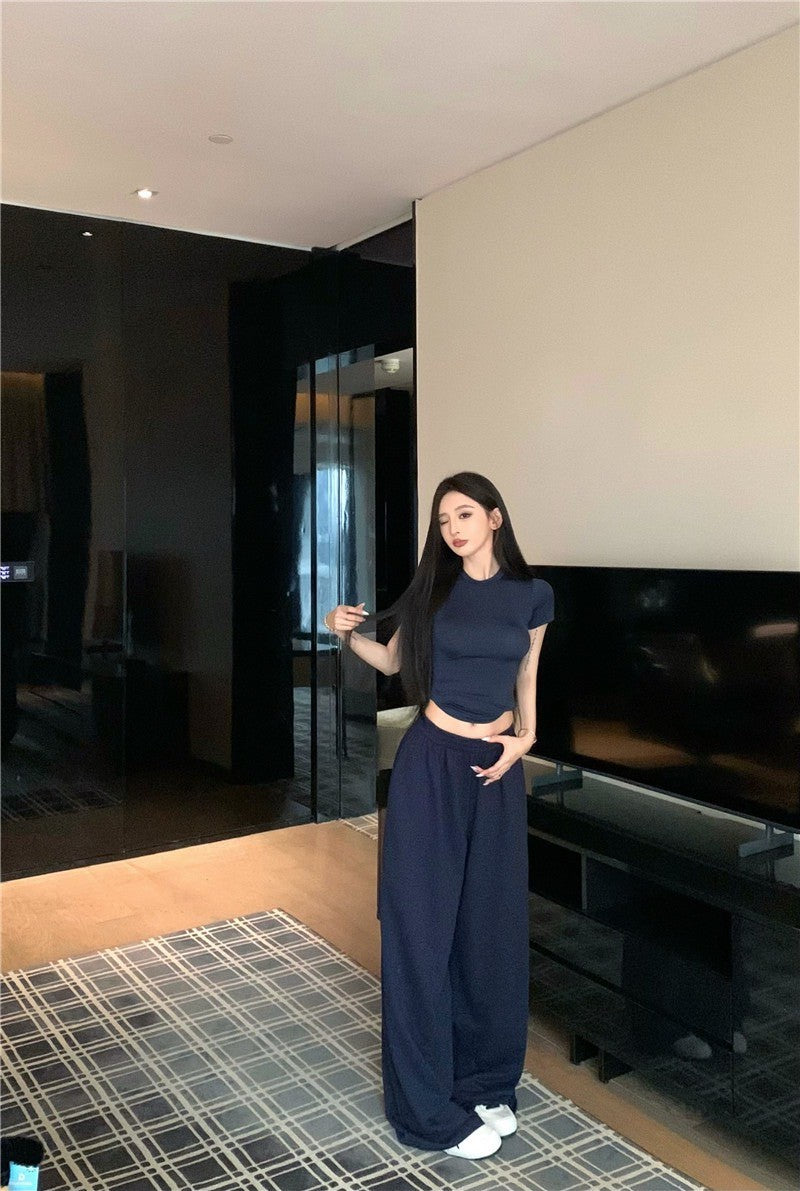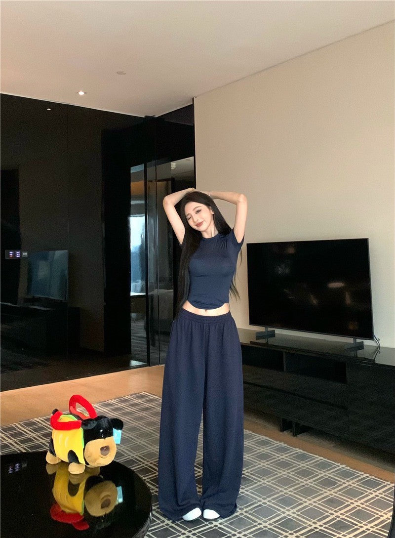 May. 經典Skims春夏版型 修身彈力純色上衣 休閒褲 藏青