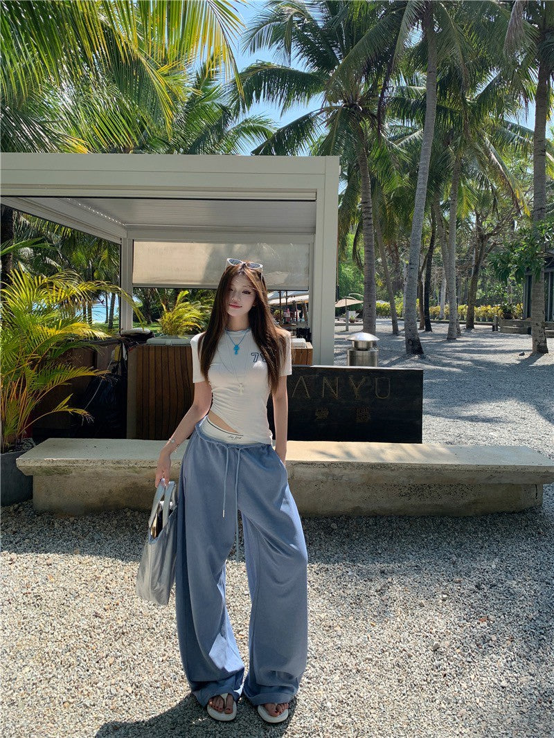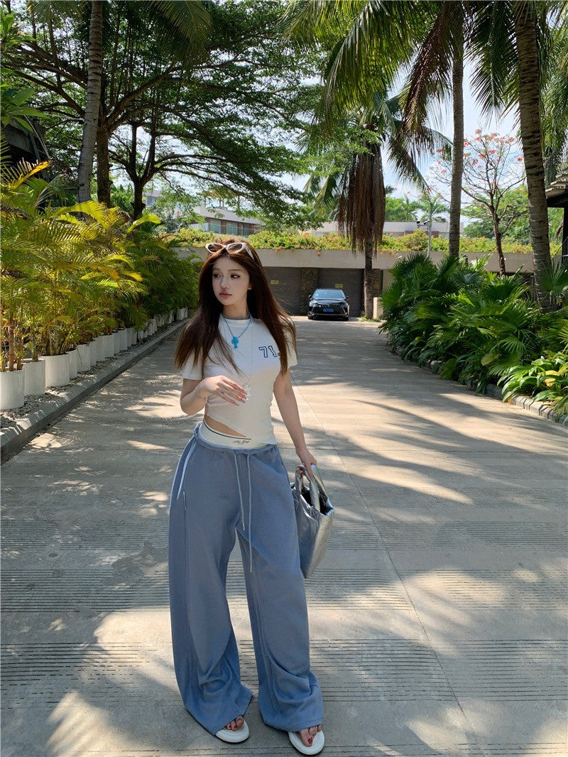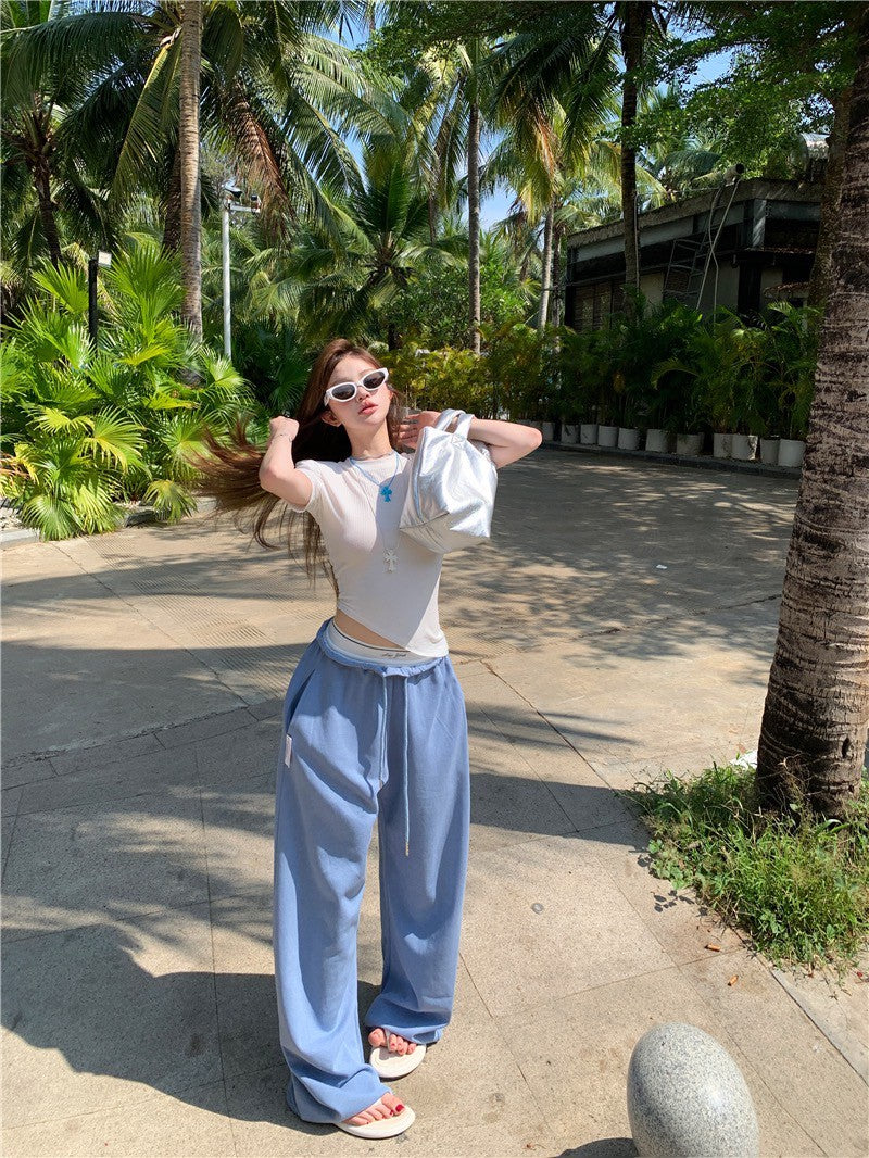 May. 辣妹夏日顯瘦正肩上衣 運動休閒拼接設計休閒褲 藍