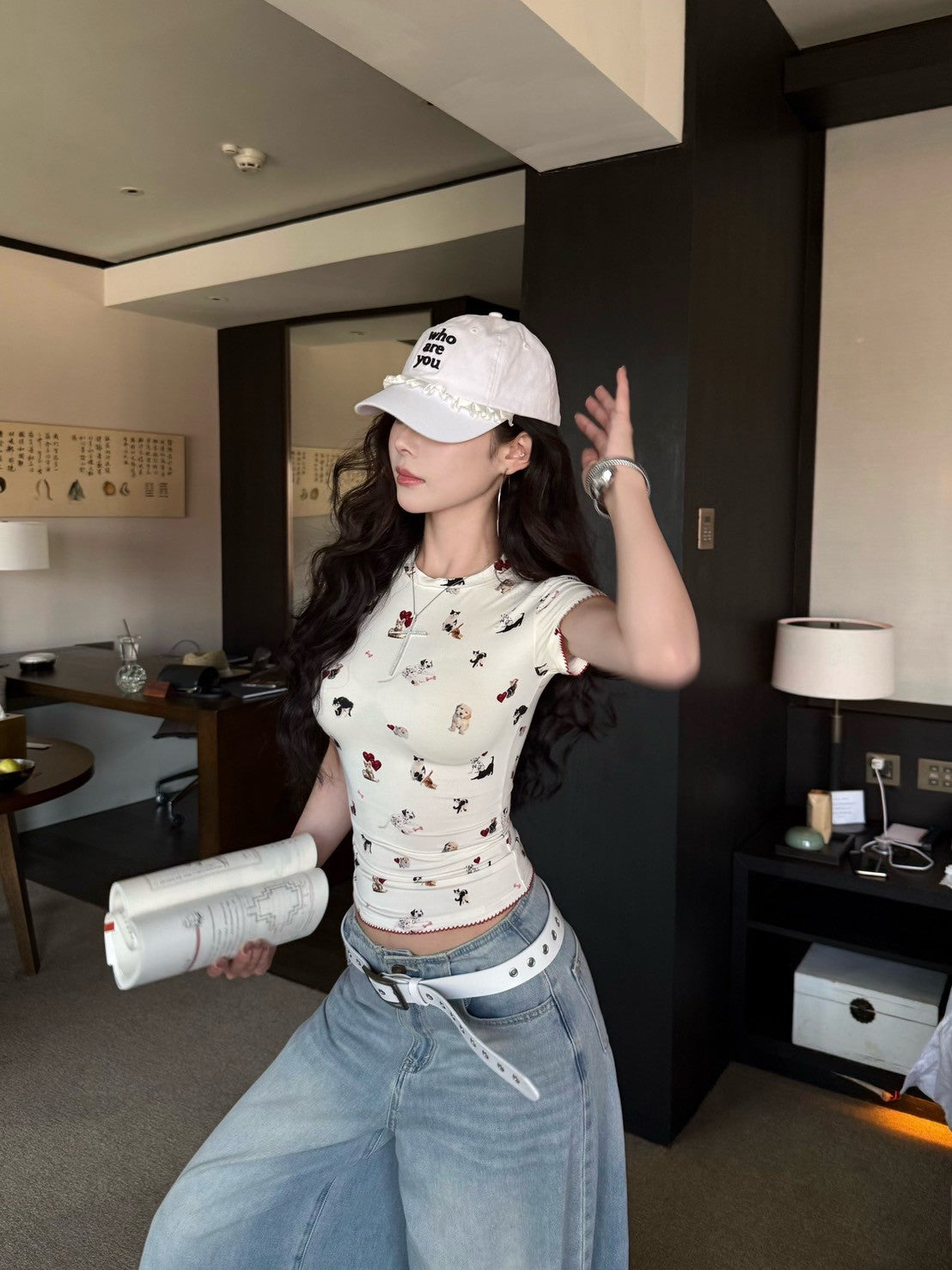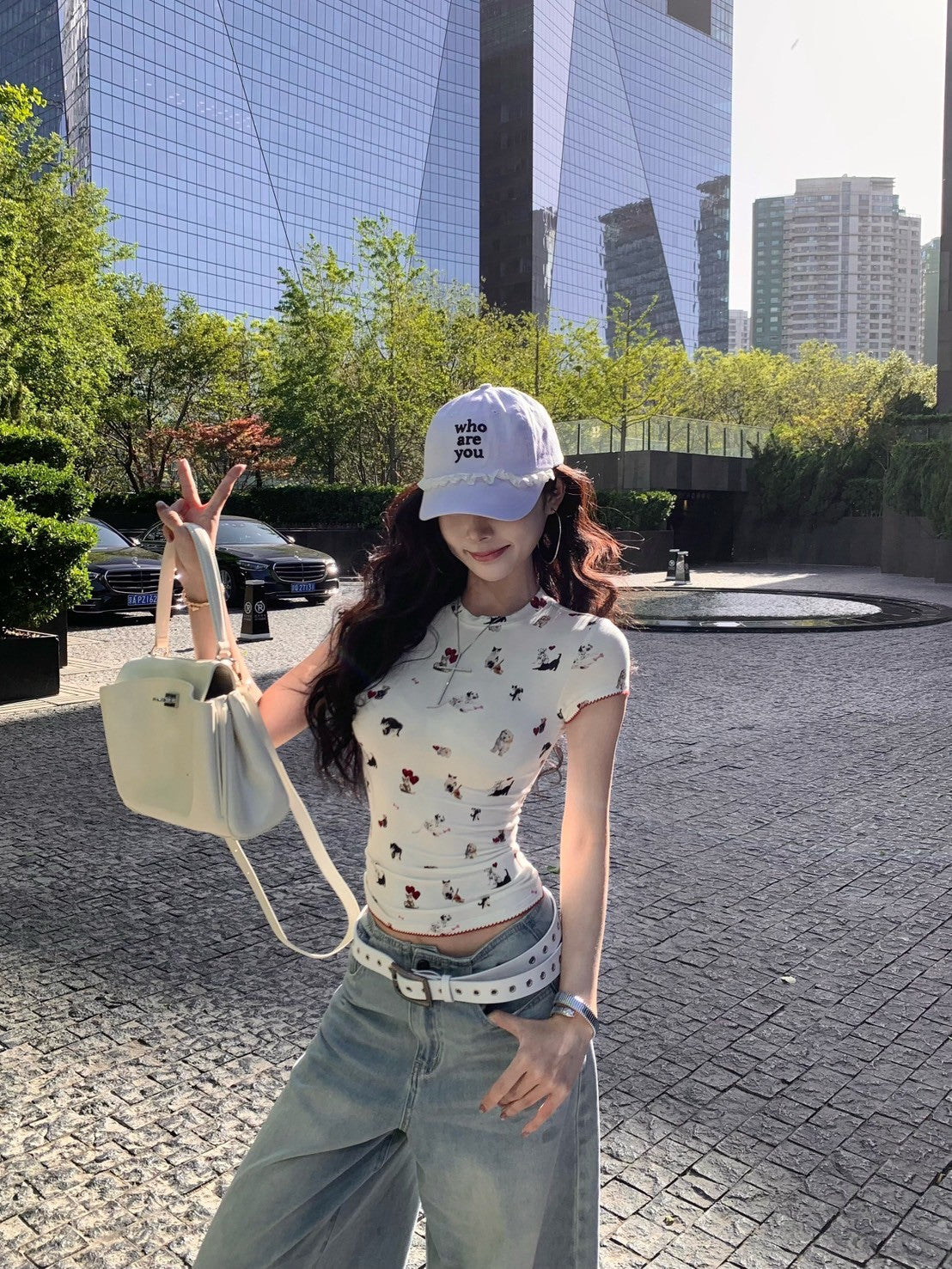 May. Puppy修勾貓咪 美式彈力正肩上衣