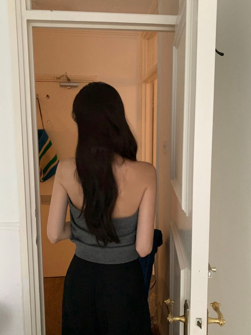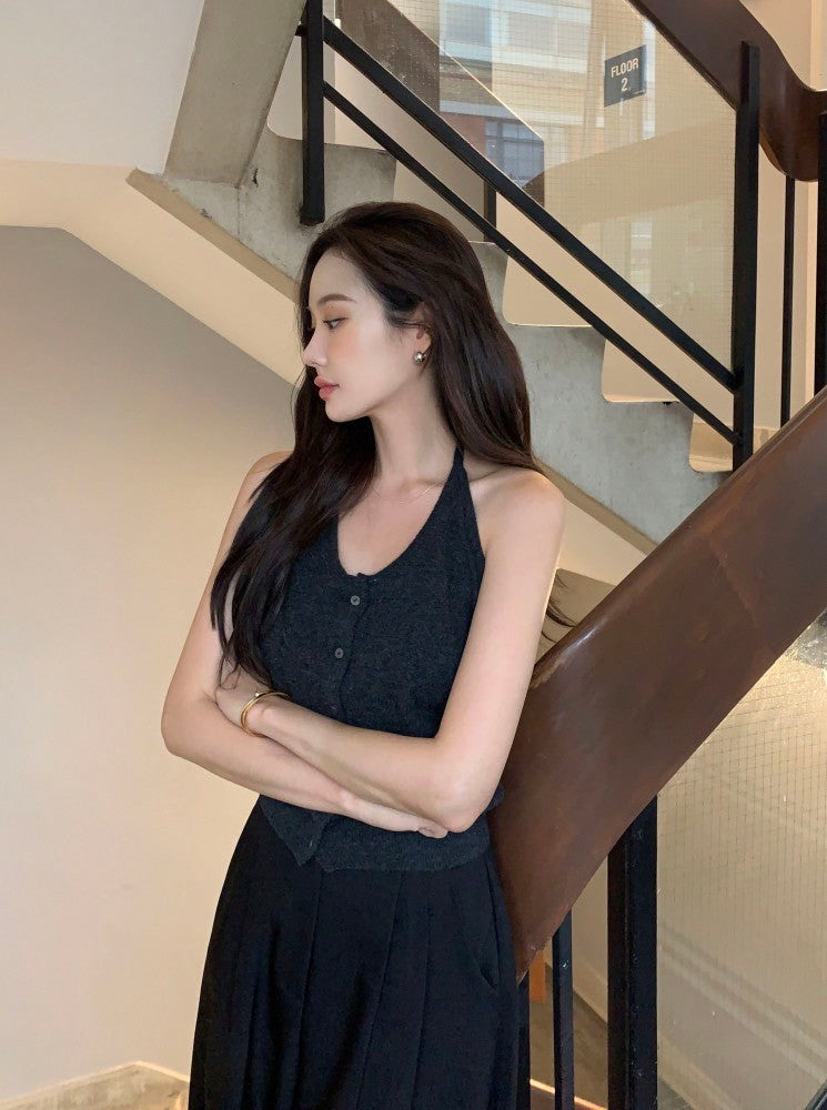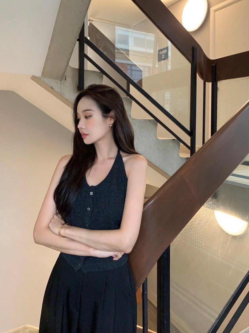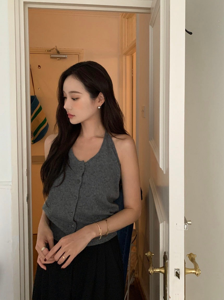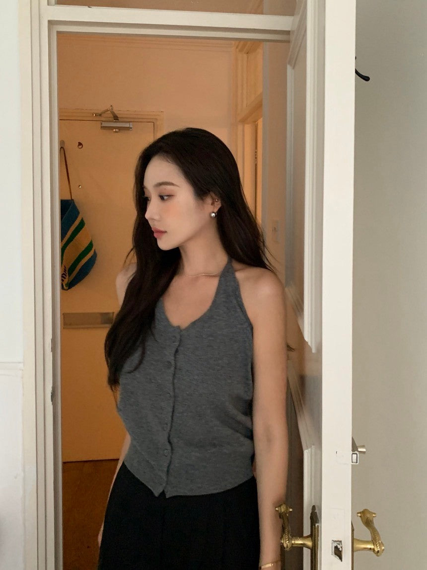 Oct. 友好疊穿 針織排扣後背挖空背心 灰