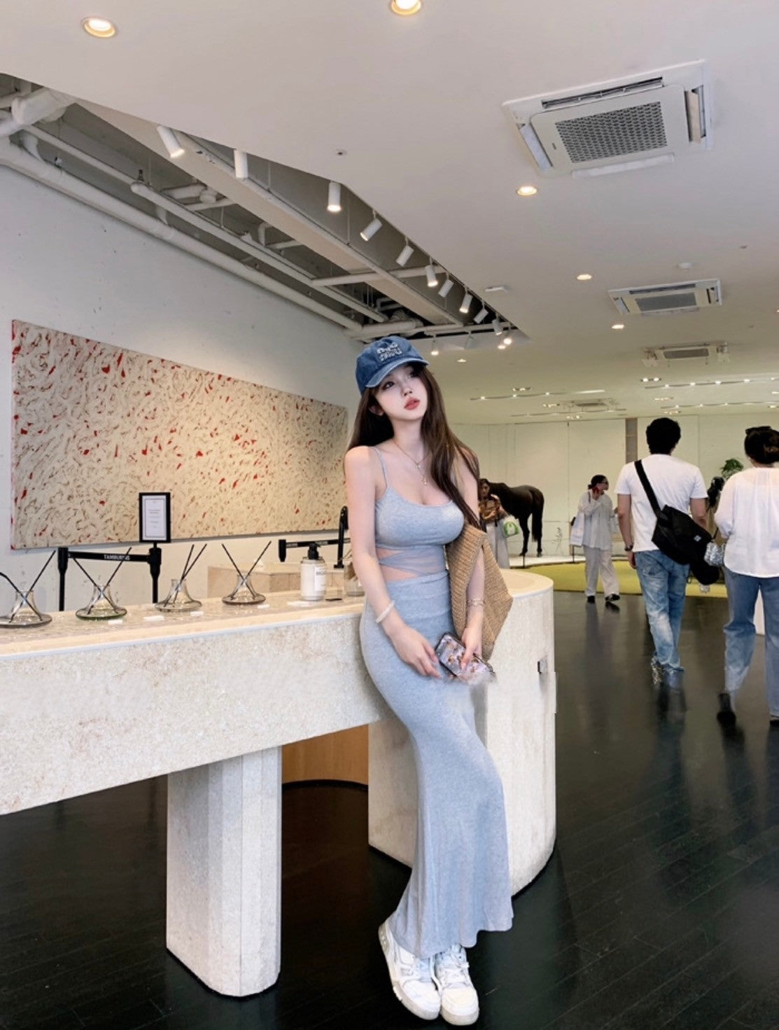 Sep. 卡戴珊人魚姐姐 性感網紗縷空修身吊帶連身裙 灰